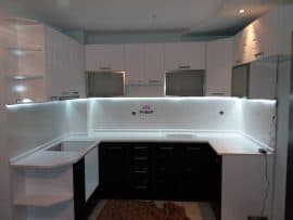 Като цветова гама, съчетанието е добро, в случай, че целия интериор на апартаментът Ви е в подобни нюанси. Синьото може да бъде заменено с бяло. Ако си мислите, че тази кухня струва цяло състояние, съвсем не сте прави. Подобен проект може да бъде реализиран на средна цена, която е по възможностите на всеки средностатистически Българин или по-точно на Българско семейство. Ясно е, че всичко зависи от бюджета за това може да направите по-евтин вариант или да поръчате нещо уникално. Евтиния вариант също е алтернатива като няма да има голяма разлика. Когато сте избрали лично кухнята по поръчка то със сигурност ще и се радвате всеки ден.